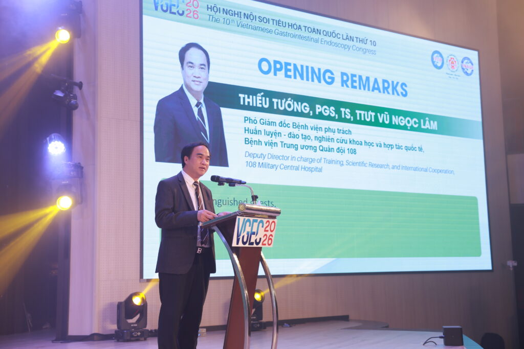 Phát biểu tại lễ khai mạc, Thiếu tướng, PGS.TS, TTƯT Vũ Ngọc Lâm – Phó Giám đốc Bệnh viện Trung ương Quân đội 108 – chia sẻ về định hướng phát triển chuyên sâu của bệnh viện trong lĩnh vực tiêu hóa và nội soi. Với vai trò đơn vị đăng cai, Bệnh viện Trung ương Quân đội 108 đã phối hợp chặt chẽ trong công tác chuẩn bị, đảm bảo đầy đủ các điều kiện về cơ sở vật chất, trang thiết bị và nhân lực, qua đó góp phần tổ chức thành công các phiên báo cáo, thảo luận và thực hành với chất lượng chuyên môn cao.